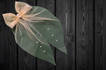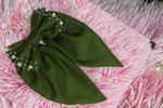 This bow is made of satin cloth. It is decorated with beads and has a strong clip. It is a handmade gift for those who love. We also offer customization.